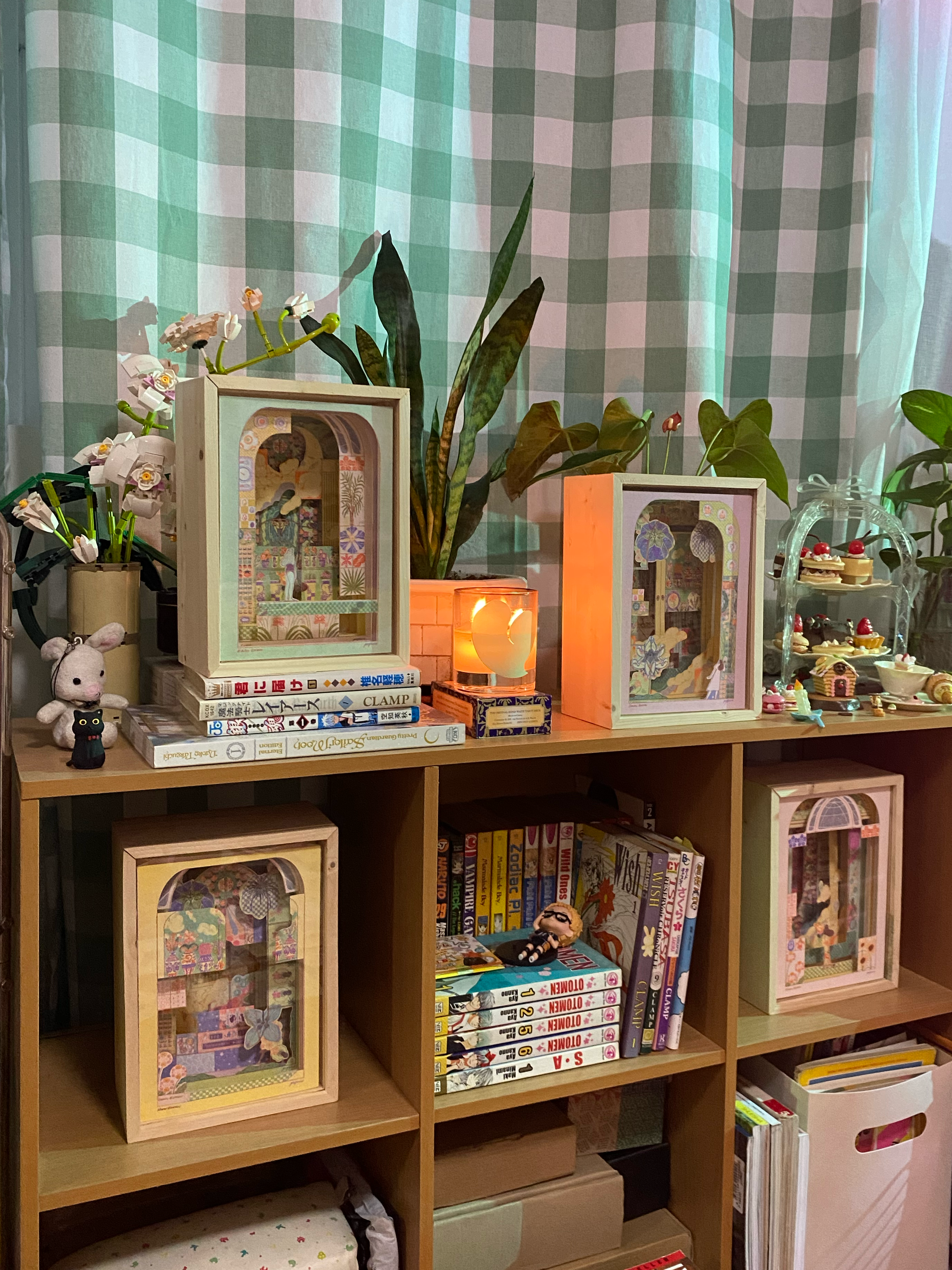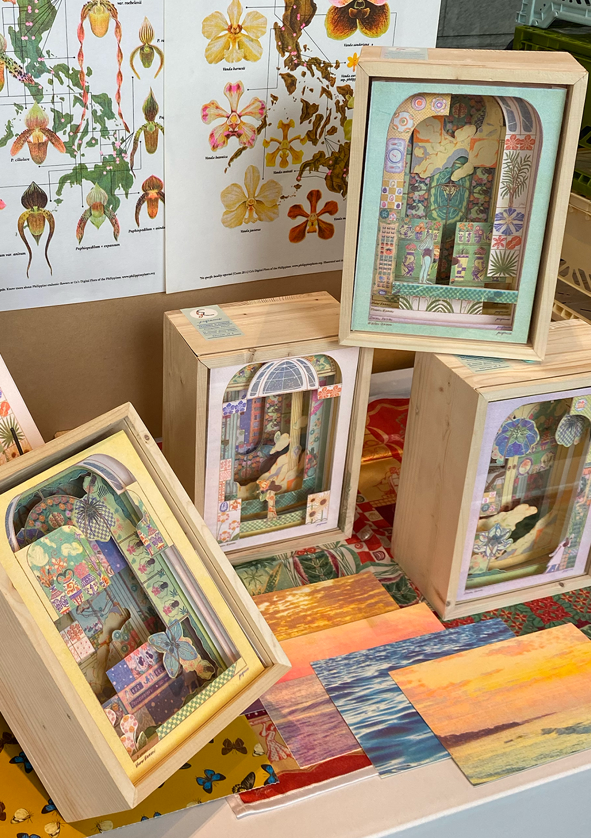 → Hand-cut Risograph illustrations in a wooden box with sliding acrylic cover