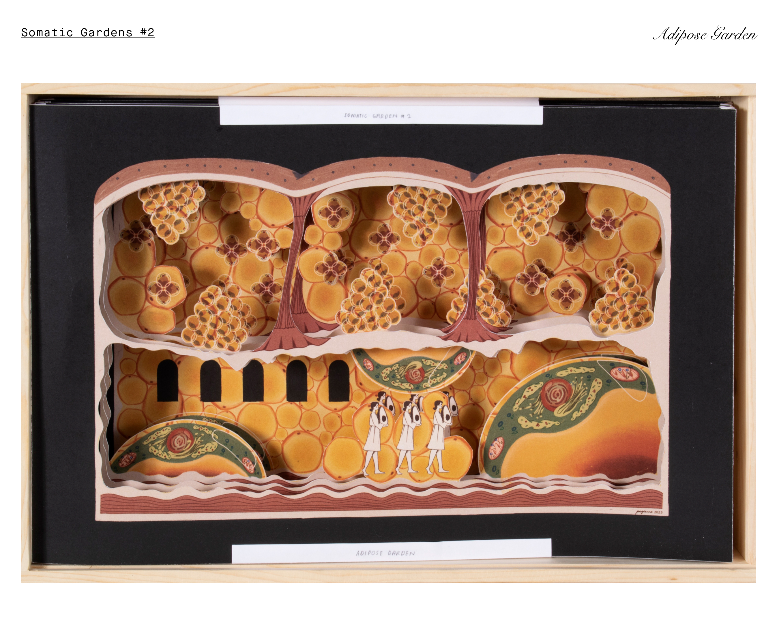 Reimagining somatic cells as gardens and healing spaces. Inspired by somatic therapy, the series invites one to stroll through the human body and stay within.